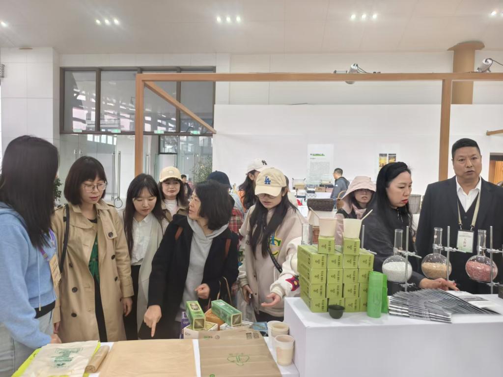 何东一行在青神国际竹艺城发展投资有限公司工作人员带领下参观了博览会现场。参与本届竹博会的260家参展商来自浙江、福建、湖南等全国多地。各参展商带来的品类丰富多样,包括竹非遗、竹家具、竹工艺品、竹食品等7大类上万件全竹产业链产品,琳琅满目的产品让师生们大开眼界,近距离深入接触行业前沿信息。