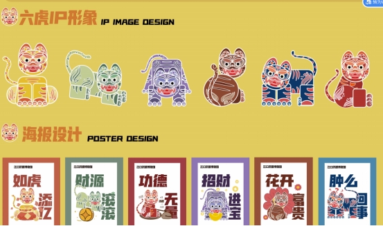 《金虎嬉福》以江口沉银出土文物为灵感,巧妙融合传统历史文化元素与现代数字设计手法,通过活泼的金虎形象传递吉祥寓意。作品兼具文化深度与趣味性,获评审高度评价。