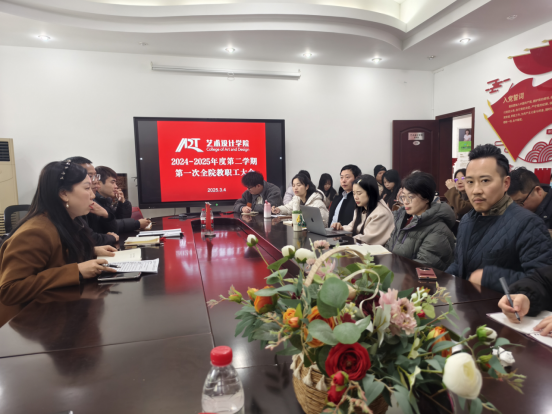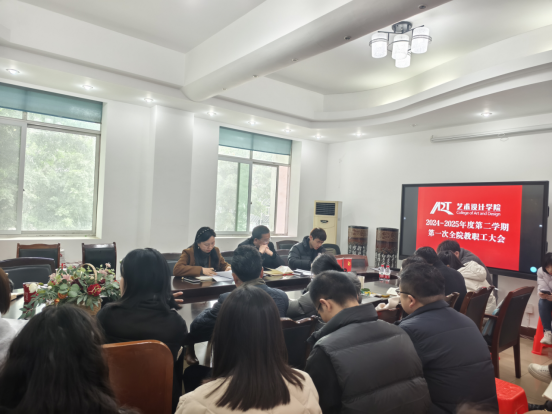 3月4日,艺术设计学院在温故楼210会议室召开2024-2025学年度第二学期第一次全院教职工大会。学院党总支书记郭光海、院长詹颖、党总支副书记贾仕延及全体行政人员、专职辅导员、专任教师参加了会议。会议由詹颖主持。会议聚焦“双高”建设核心任务,部署重点领域工作,为打造一流职业教育体系谋篇布局。