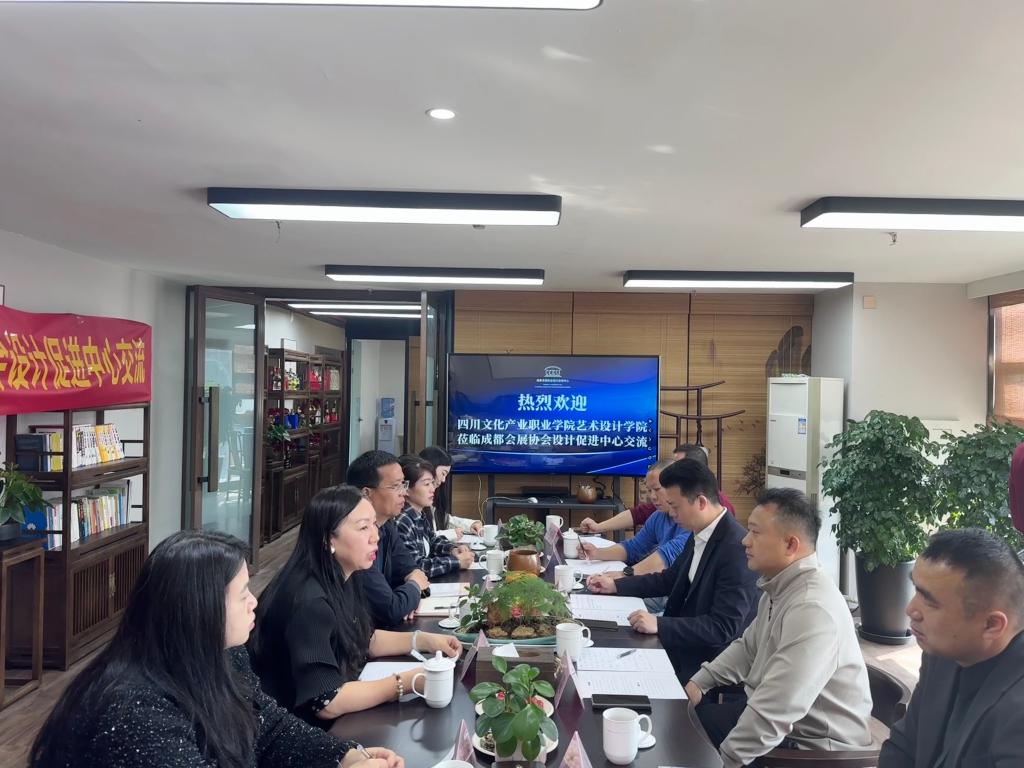 4月9日,四川文化产业职业学院艺术设计学院党总支书记郭光海、院长詹颖、数字媒体艺术设计专业主任李腾及专业教师冯妮娜、施舒、张彦杰一行,前往成都会展协会设计促进中心开展调研交流活动。协会秘书长颜子荐、监事长吴超、设计促进中心主任温明贵,协会理事单位道扬设计总经理周毅、佳效文化总经理刘洪,协会会员单位视研所总经理李雨阳,以及成都集展创意总经理严涛热情接待,并进行了深入交流。