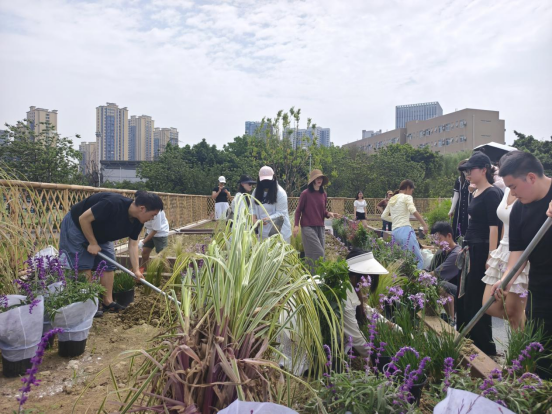 5 月 14 日,艺术设计学院环境艺术设计专业群共约30名师生共同参与校内实践基地的建设,打造集专业实践、景观美化、休闲学习、劳动教育于一体的生态空间,标志着学院在“实践育人”“劳动育人” 领域迈上新台阶。艺术设计学院党总支书记郭光海、院长詹颖、副书记贾仕延参加了现场活动。