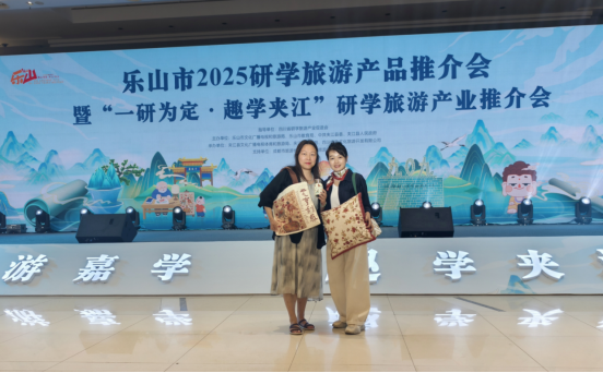 2025年5月27日,受夹江县政府邀请,产教融合处处长兰楠、艺术设计学院院长詹颖一行参加乐山市2025研学旅游产品推介会暨“一研为定•趣学夹江”研学旅游产品推介会,学院团队设计的夹江模板年画元素文创产品惊艳亮相文创展区,成为现场焦点。