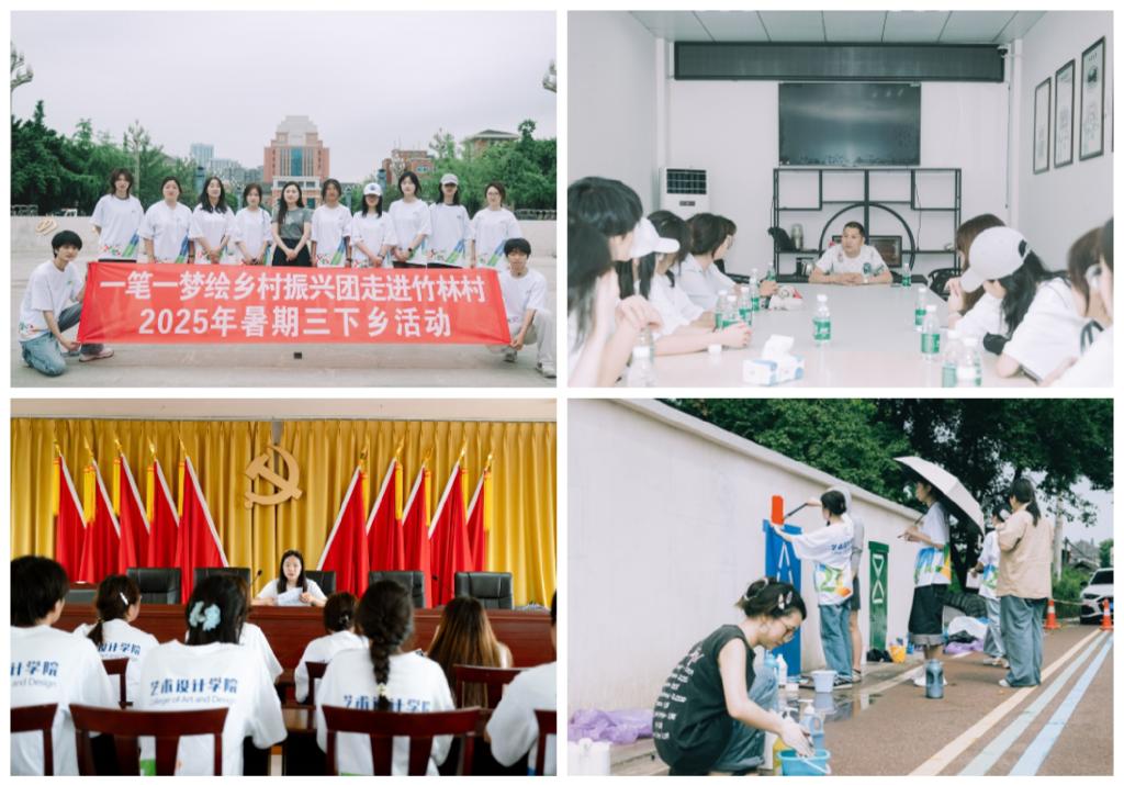 乡村振兴,文化为魂。2025年7月2日至8日,由我校艺术设计学院12名积极分子组成的“一笔一梦绘乡村振兴实践团”,赴成都市郫都区唐昌镇竹林村开展暑期“三下乡”活动。在陈巧、王玉钦老师带领下,团队以墙绘艺术完成三幅大型主题创作,为乡村文化建设赋能。