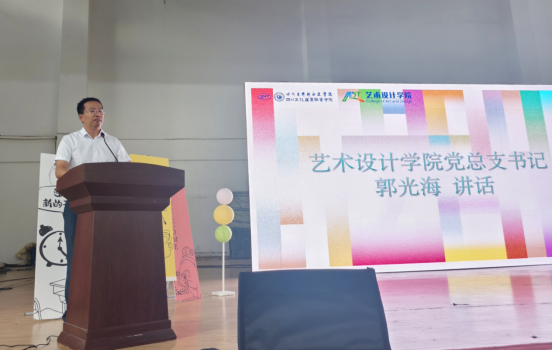 郭光海在总结讲话中,再次向新生表达欢迎与期许。他结合习近平总书记《激励新时代青年在中国式现代化建设中挺膺担当》重要文章精神,强调新时代青年的使命与担当,希望新生们树立“胸怀大局、脚踏实地”的意识,将个人理想与国家发展、行业进步紧密结合。围绕“专注”“格局”“执行”三个关键词,郭光海进一步叮嘱新生:要以“专注”之心深耕专业,心无旁骛提升设计能力;以“格局”之眼看待成长,跳出个人视角把握时代机遇;以“执行”之力落实目标,将规划转化为实际行动,主动把个人成长融入中国式现代化建设的强国伟业,在艺术设计领域为国家文化繁荣、产业发展贡献青春力量。
