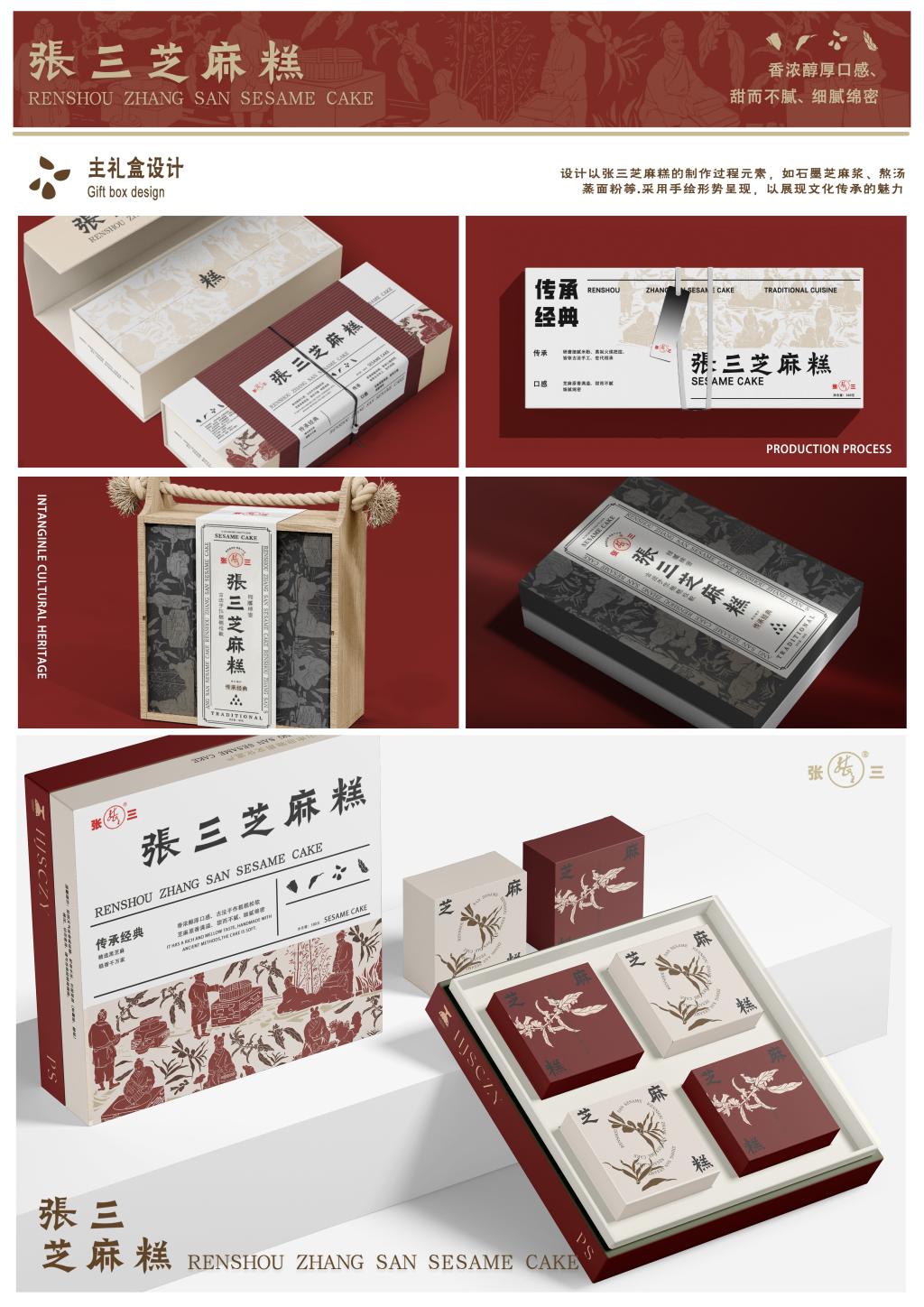 在获奖作品中,由视觉传达艺术设计专业教师王俊指导,2023级数字媒体艺术设计专业候佳欣、2023级广告艺术设计专业龚莉同学共同创作的《张三坊-百年香糕》尤为亮眼。该作品深度挖掘传统糕点的历史文化内涵,以现代设计语言重构品牌视觉体系,通过包装创新、IP塑造等方式激活老字号市场活力,最终凭借鲜明的文化特色和实用的商业价值荣获一等奖。