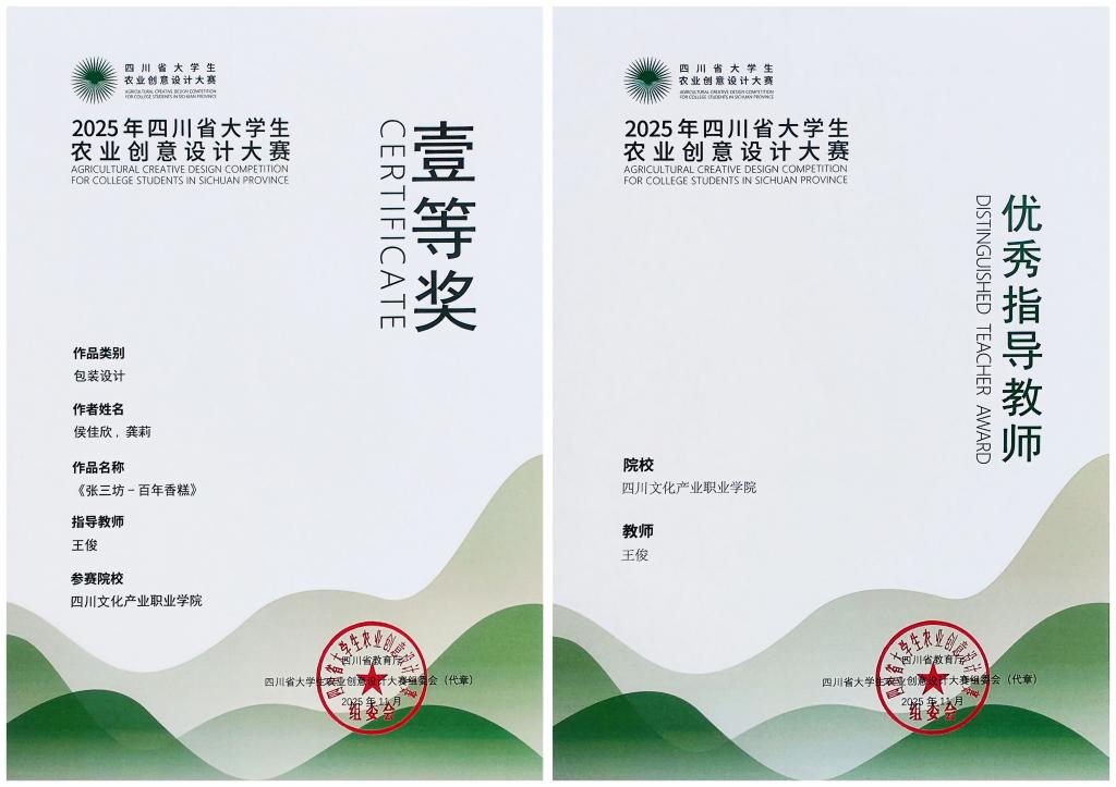 近日,由四川省教育厅、四川省农业农村厅联合主办,四川农业大学等单位共同承办的2025年四川省大学生农业创意设计大赛线上评审工作圆满落幕。艺术设计学院学子凭借扎实的专业功底、新颖的创意思维和深厚的文化积淀,在全国203所高校的激烈角逐中脱颖而出,最终斩获一等奖1项、二等奖1项、三等奖2项的优异成绩,充分展现了学院“以赛促学、以赛促创”的育人成效。