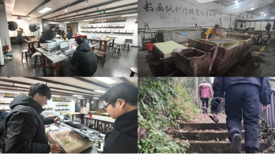 调研期间,项目组深耕一线、聚焦细节:在年画博物馆,运用高精度设备扫描200余张不同时期的年画,精准捕捉色彩、线条细节,实现年画艺术数字化复刻;深入古法造纸作坊,全程记录造纸全流程,采集图频素材,留存工艺精髓;克服山路崎岖,赴蔡翁碑实地调研,通过高清拍摄梳理造纸文化历史根脉,完善溯源数据。
