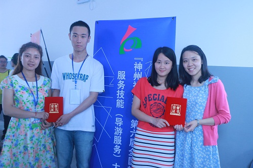 “神州视景杯”导游服务大赛于2014年5月9日-5月12日在桂林旅游高等专科学校举办,目的为贯彻落实国务院《关于加快发展旅游业的意见》的精神,促进旅游院校的专业教学水平和导游相关专业学生导游服务技能的提高,由中国旅游协会旅游教育分会主办。此次参赛的高职院校共365所,参赛选手840人。大赛分为理论、才艺和讲解三个赛项,每项单独评分,选手的名次由所有参赛选手综合排名得出。历经4天的激烈角逐,我院参赛选手干烨璐、金浩然两位同学充分展示了扎实的专业知识、娴熟的讲解、出众的才艺和敏捷的应变能力,在众多的参赛选手中脱颖而出,分别获得了高等院校组三等奖和特别优秀奖。