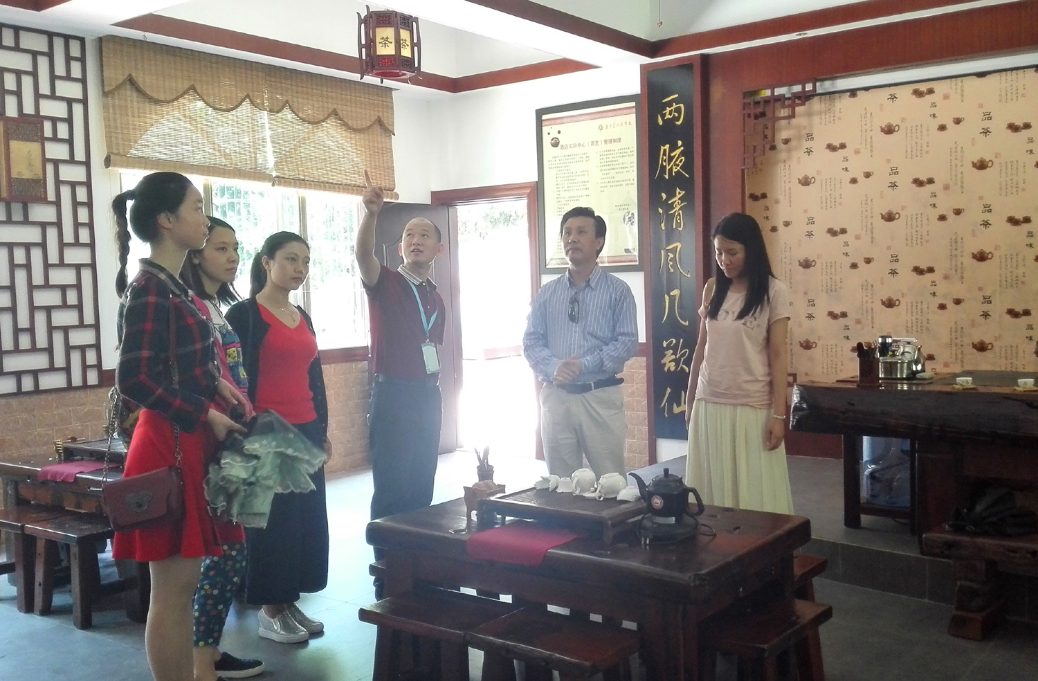广东旅校副校长曾小力介绍了广东省旅游学校发展和建设的情况,还陪同我院教师参观了学校教学、行政、生活等各个区域。广东旅校的校园文化氛围、学生创业训练中心、良好的校企合作等给人留下深刻的印象。在文化创意实训室、茶艺实训室、咖啡厅实训室、日本文化体验馆、欧美文化体验馆,我院一行与广东旅校的师生进行了深入交流。