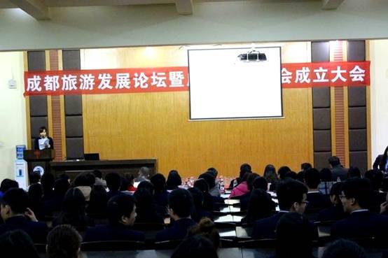 成立大会上成都市旅游局巡视员岑永康宣读了《成都市旅游局关于同意筹备成立成都旅游学会的批复》,会议审议通过了学会章程,并就调整修改后的学会宗旨、成立目的、业务范围和具体工作要求等进行了交流协商。在随后举办的成都旅游发展论坛上,多所川内高校旅游相关学院和专业的专家,围绕“成都旅游发展”主题,做了精彩的学术报告。