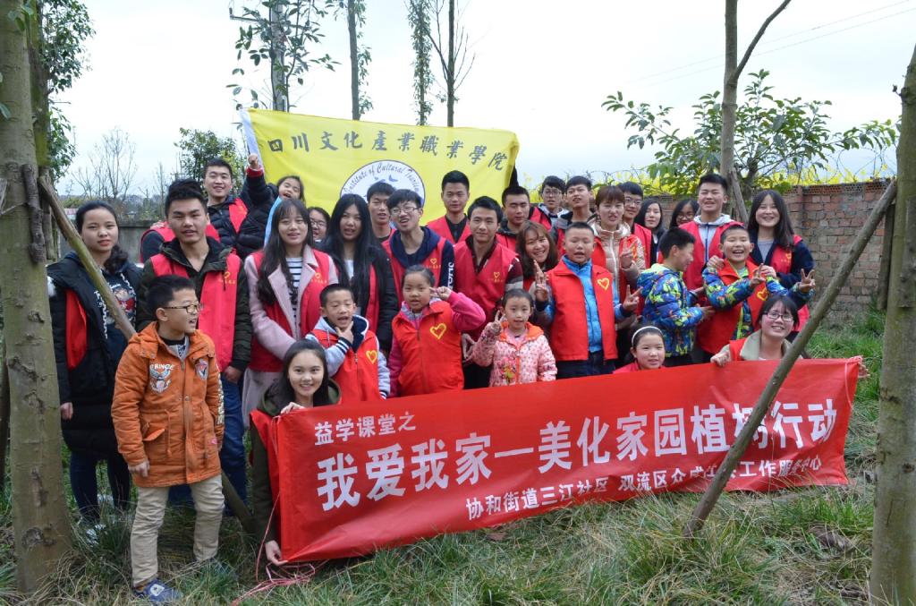 为响应学校“雷锋月”活动号召,进一步提高学院师生文明素质和爱护环境意识,文化旅游学院分团委、学生会、青年志愿者协会、部分学生代表于3月12日赴三江社区开展了以“共创一片蓝天,同爱一份绿色”为主题的志愿者植树活动。