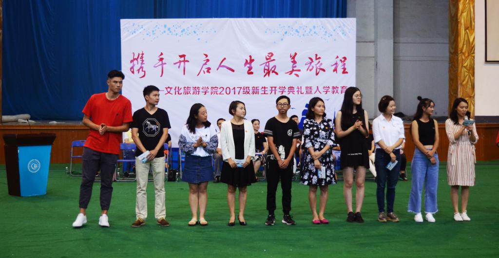 开学典礼围绕“携手开启人生最美旅程”主题,突破传统的会议模式,使典礼成为了2017级新同学开启大学生活的一场难忘的仪式。同学们手持学院定制款老师亲笔寄语的“船票”,从精心装扮的“文旅号”入口进场,登上了“文旅号”巨轮,和担任导游的老师们一道,携手开启了人生中最美的大学旅程。黄萍代表学院表达了对2017级462名新同学的热烈欢迎,并结合文化旅游业发展态势对同学们即将开始的大学生活提出了期许。她讲到,在全域旅游、智慧旅游和跨界融合的大背景下,我国面临从普通旅游产业到以“文化+旅游”为特色的文化旅游产业的升级,学院各专业均有着非常广阔的发展前景。她希望同学们珍惜这个伟大的时代,面对全新的大学生活,约束自我、做一个自制自律的人,完善自我、做一个情理兼修的人,砥砺自我、做一个担当责任的人,超越自我、做一个勇于创新的人,在“文旅号”上度过一生中最值得骄傲的光辉岁月和精彩旅程。在热烈的掌声中,文旅学院五个专业的负责老师携手五名学生代表阔步走入会场,师生们满怀深情地互相对话,专业老师分别将自己手中珍藏的、写满真诚祝愿的“文旅号船票”赠予学生。该环节成为了整场典礼中最温情的一幕。