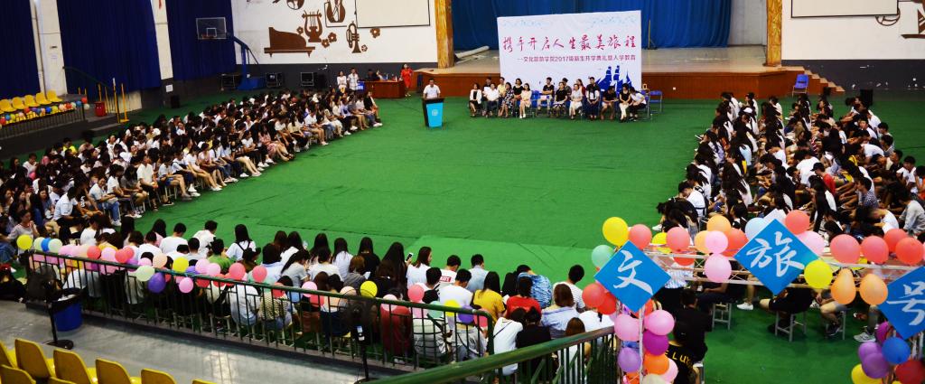 9月22日下午,我院2017级新生开学典礼在艺体中心举行。学院党总支书记、院长黄萍,副院长梁中正,党总支副书记王维姝及全院教职工,2017级全体同学参加了开学典礼。开学典礼由聂维老师主持。