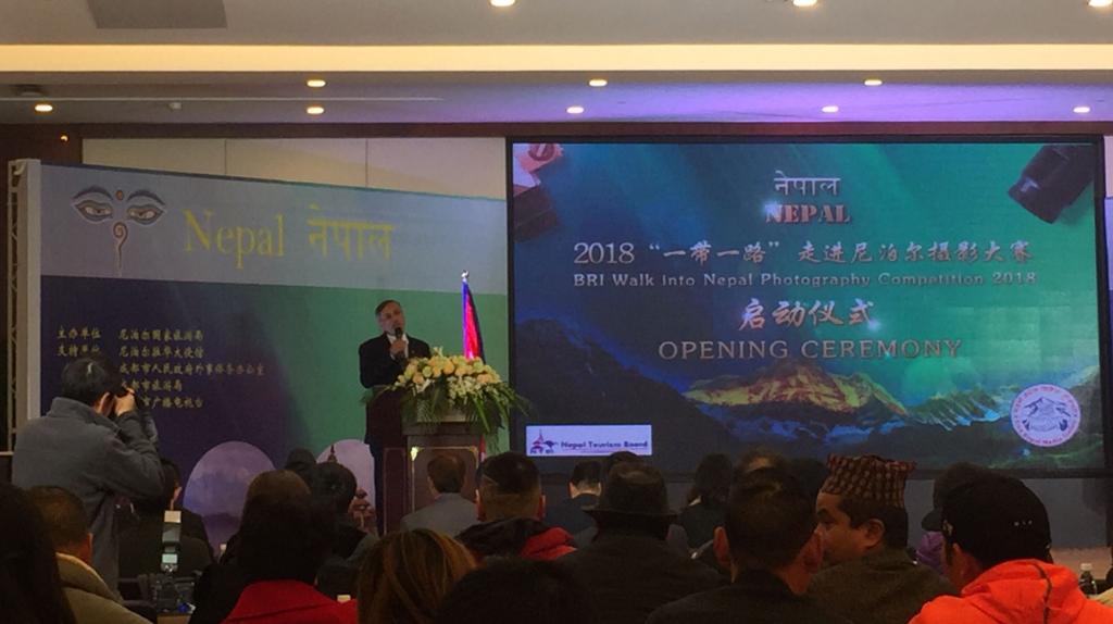 12月17日下午,由尼泊尔国家旅游局主办的2018“一带一路”走进尼泊尔摄影大赛启动仪式在成都市金河宾馆举行。尼泊尔驻华大使利拉·马尼·鲍德尔和尼泊尔国家旅游局局长迪帕克·拉杰·乔西出席仪式并致辞。鲍德尔在致辞中说,尼泊尔是世界级的旅游目的地,尼方政府希望在“一带一路”倡议下通过摄影大赛在内的各种文化交流,带动中尼两国的全面经济交流。