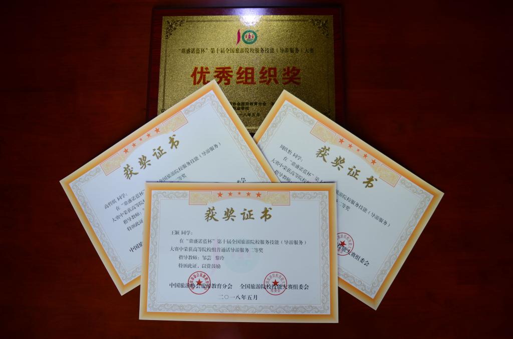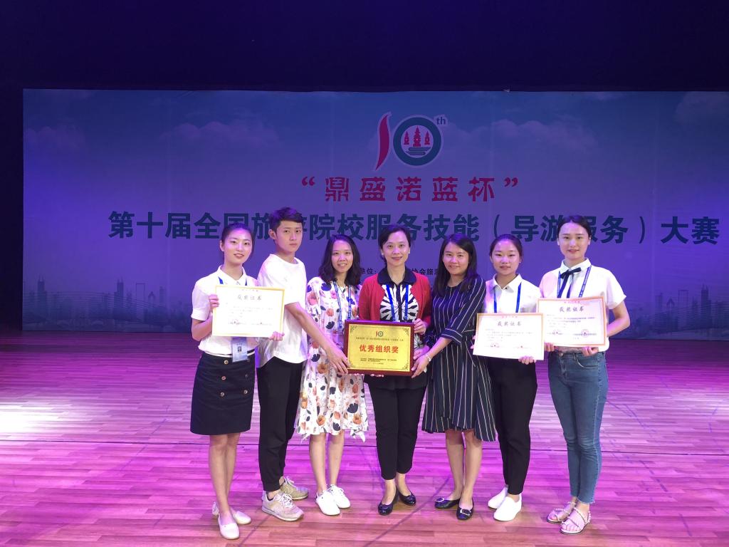 5月10日至13日,文旅学院党总支书记、院长黄萍和相关专业负责人带领旅游管理专业群3名同学参加了由中国旅游协会主办的“鼎盛诺蓝杯”第十届全国旅游院校服务技能(导游服务)大赛。我院参赛选手周欣怡、王颖、高哲琪角逐了高校中文组和高校英文组的比赛,3名同学均获得二等奖,学院获优秀组织奖。