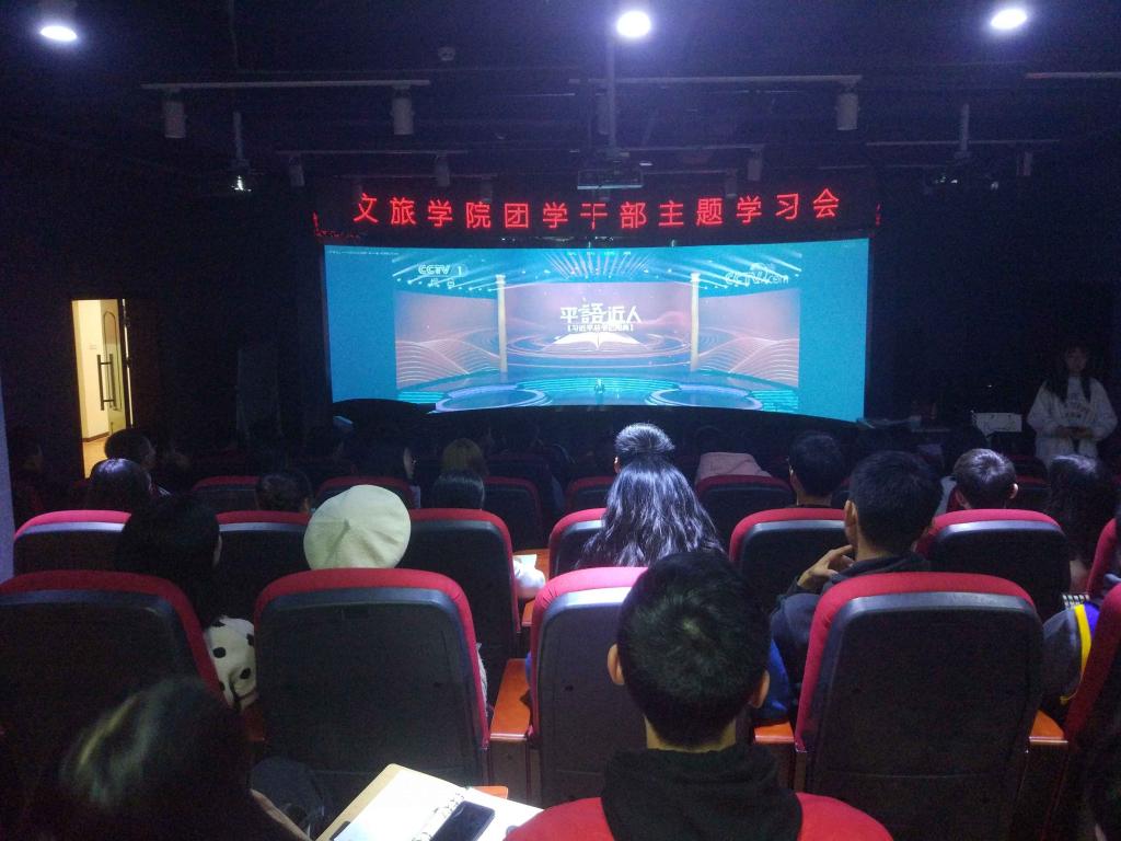 为进一步学习宣传贯彻习近平新时代中国特色社会主义思想,增强我院师生对其丰富内涵和核心要义的的理解和内化,我院分团委11月1日在明道楼八楼环幕厅启动“学平语、赞平语”主题活动,集中观看了央视《平“语”近人——习近平总书记用典》节目。学院全体辅导员、入党积极分子、学生干部参加了此次学习观看活动。