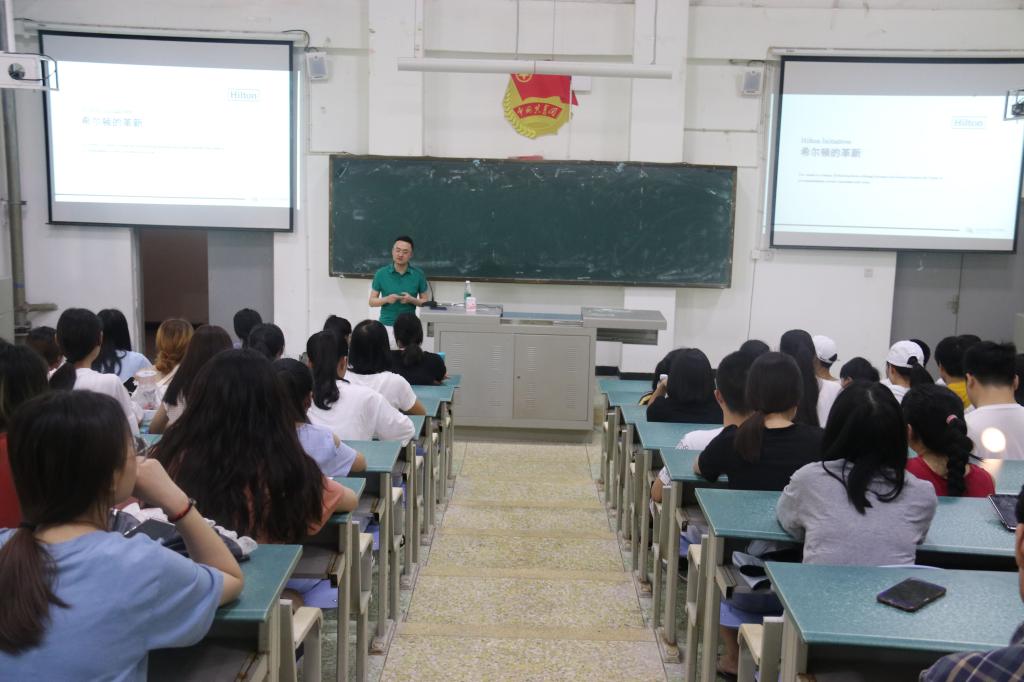 刘志逸先生以“酒店行业的革新”为题,以希尔顿酒店为例给大家展示了酒店如何运用国际化视野和互联网思维进行革新。同时结合本专业学生的特点,给大家介绍了酒店职场规划,为大家今后的实习就业指明方向。