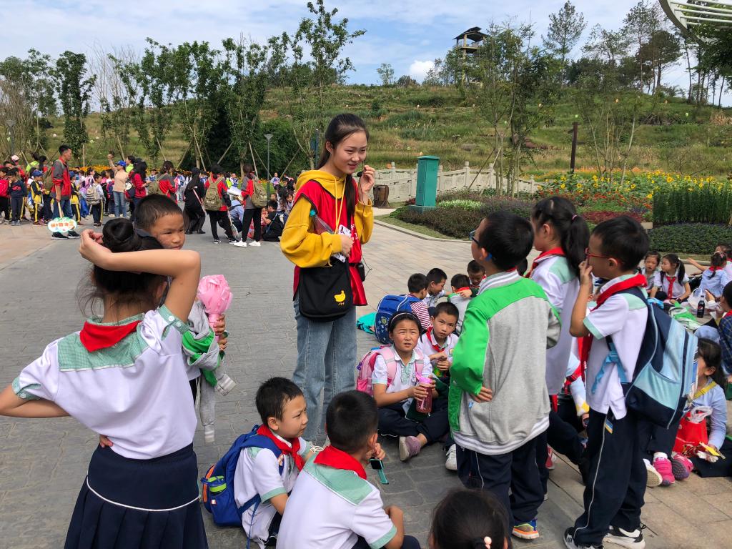 10月12日,文化旅游学院37名学生带领成都市高新区新源学校1-3年级共17个班级的同学,前往华侨城欢乐田园开展了为期一天的研学旅行校外实践活动。