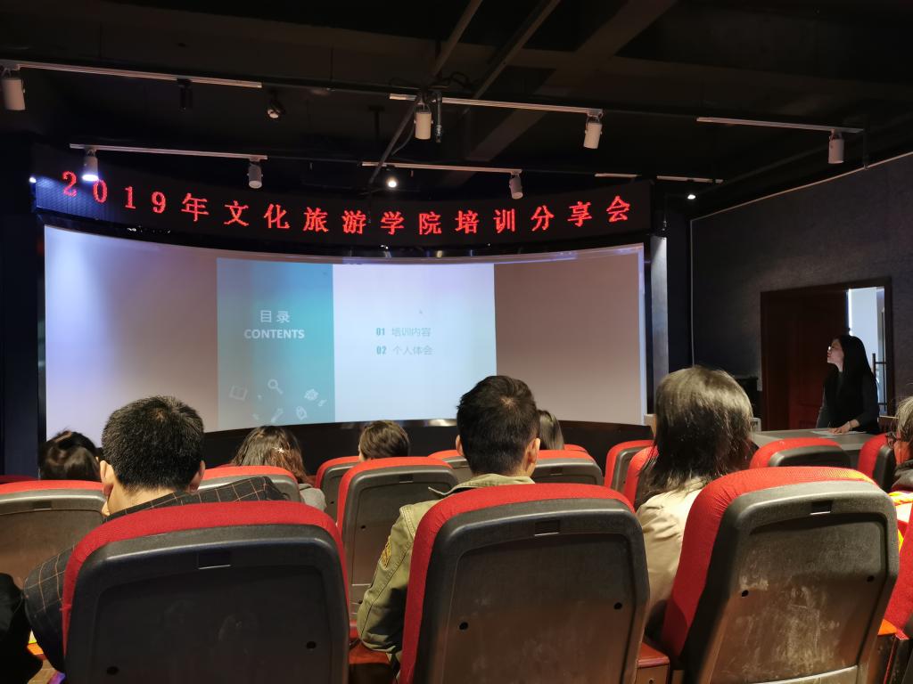 为了扩大教师外出培训的学习成效,文化旅游学院于11月14日下午在明道楼8楼环幕厅举行了培训分享会。