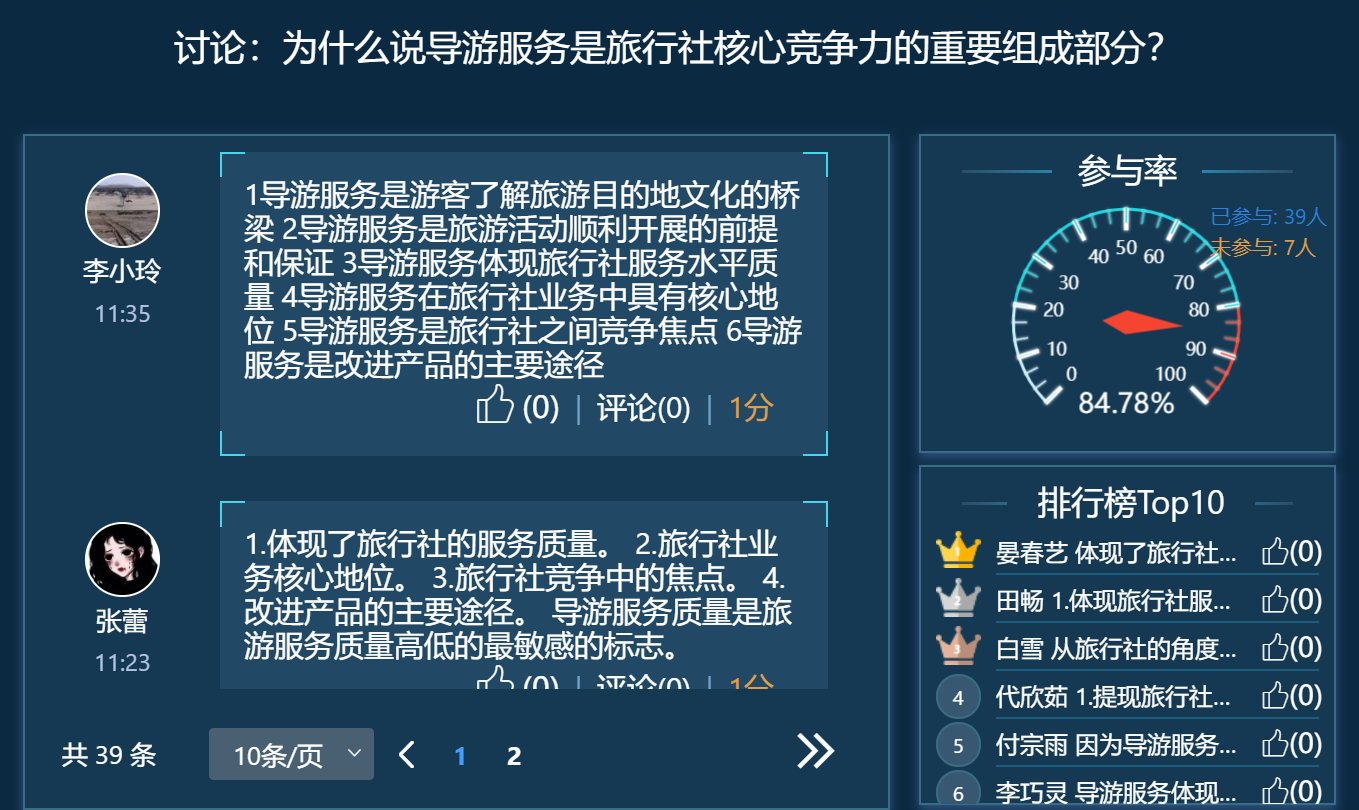 相约“云课堂”,师生共克时艰。本着“早动员、早部署、早落实”的原则,旅游管理专业群各专业于在线教学开课前两周就全面梳理专业课程,结合线上教学资源,确定首批在线课程开课名单。在正式开课前,专业群老师们积极探索多元化在线教学途径,通过“云教研”共同探讨腾讯课堂、钉钉、瞩目、QQ群屏幕分享等各类在线教学工具的使用方法,对比各类教学平台的在线资源,与部分学生模拟互动,分析教学效果差异。开课两周来,专业群老师们不断优化教学资源,加强教学互动,强化课后督导,努力实现课程教学目标;同学们普遍认为在线平台教学资源丰富、老师认真负责、课程设计新颖,学生到课率高,学习效果良好。