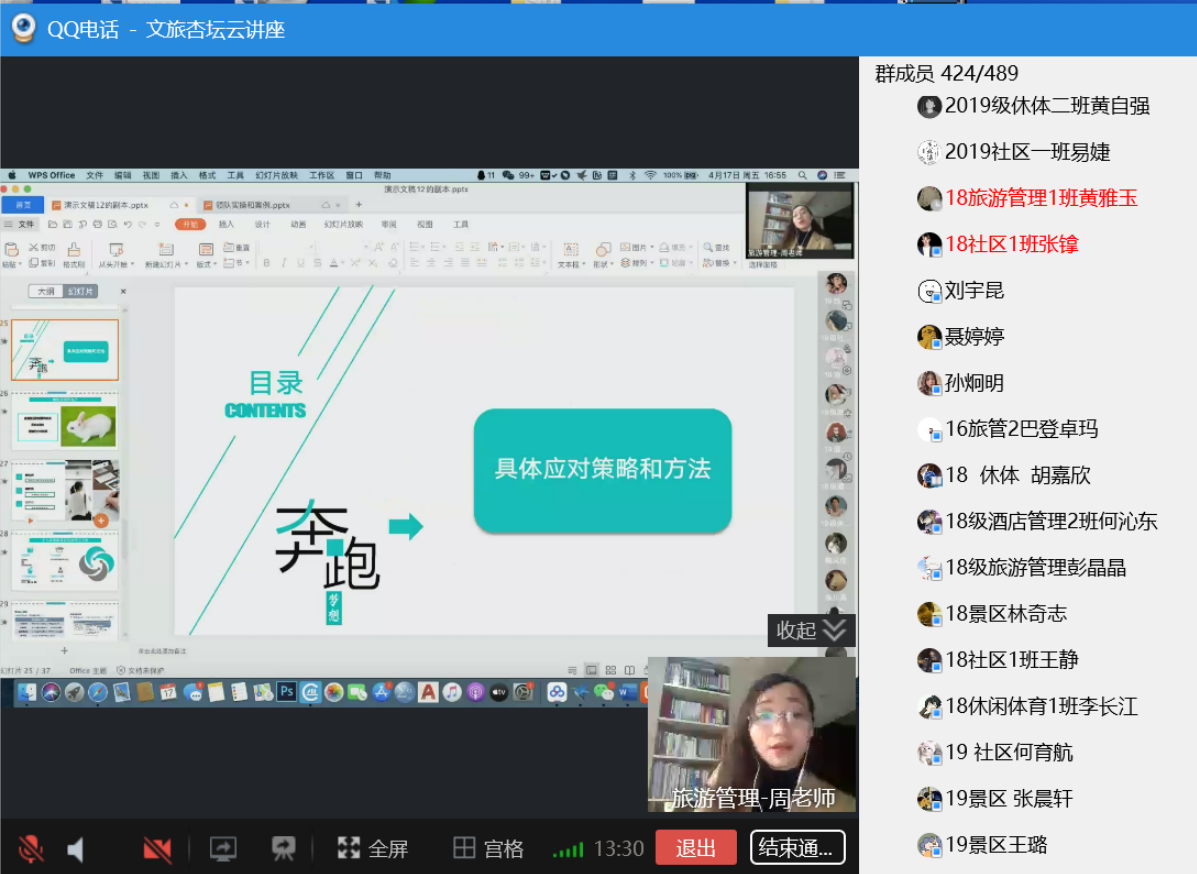 为进一步贯彻落实“停课不停学”的精神要求,文化旅游学院在有条不紊地开展在线教学的同时,积极拓展教育教学资源,4月17日下午通过网络直播平台举办了“文旅杏坛”第八期讲座。学院师生共计400余人参加了此次讲座,讲座由旅游管理专业负责人黎玲主持。