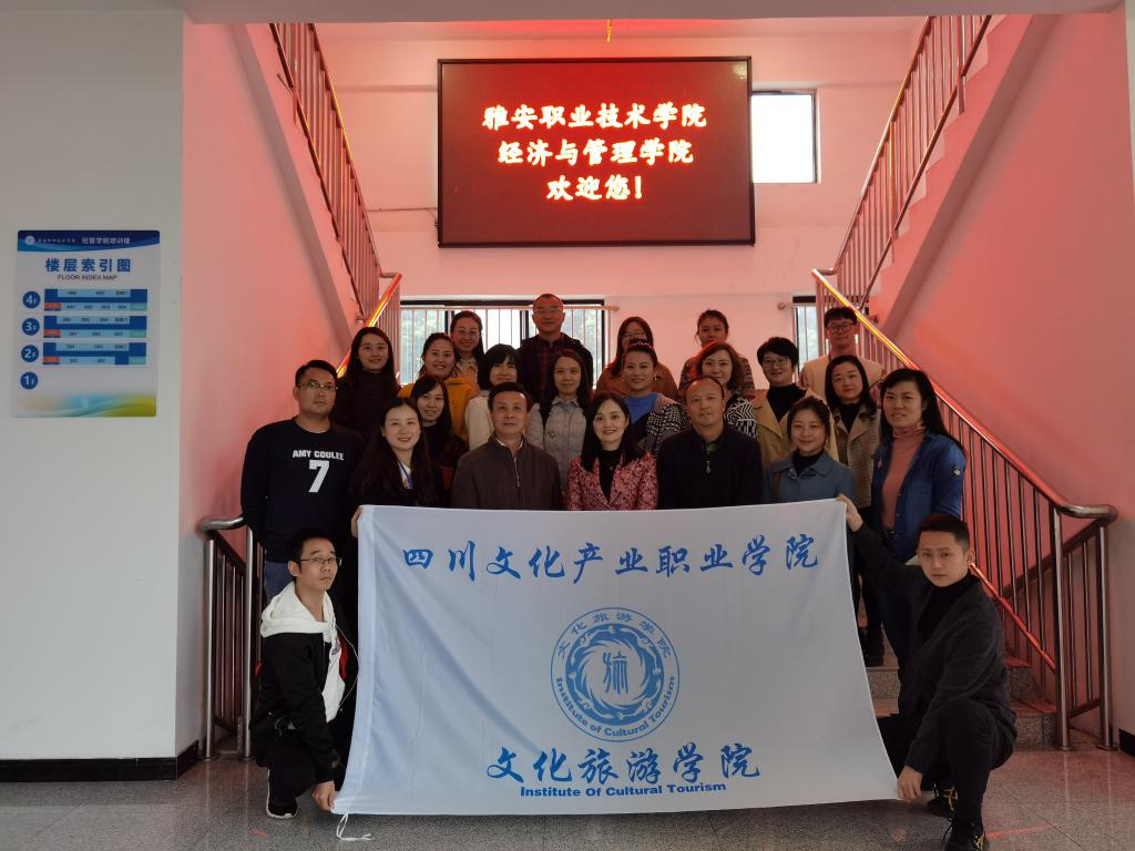10月30日下午,文旅学院党总支书记张宗胜、院长梁中正、副书记田娅、副院长曾兴、以及各专业负责人、教务科、学工科一行17人前往雅安职业技术学院参观交流学习。雅安职业技术学院经济与管理学院党支部书记高运荣、副书记任敏、副院长李柚、以及相关专业老师、学生管理人员出席此次交流会。