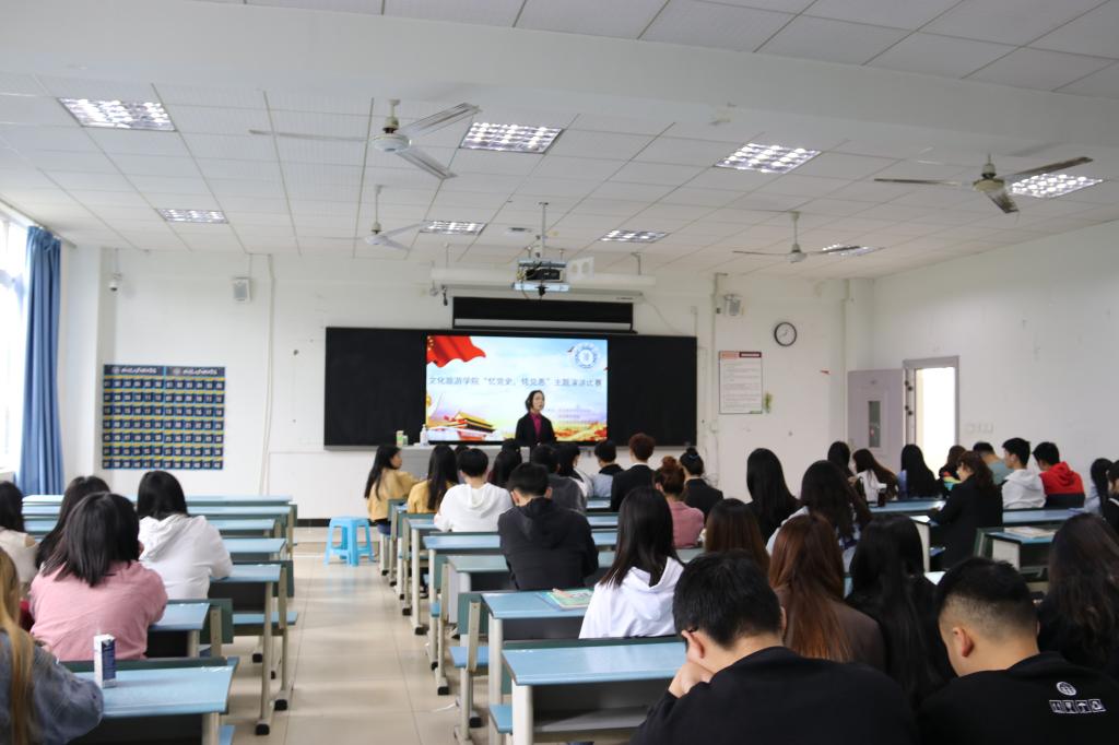 为热烈庆祝中国共产党成立100周年,引导广大青年学生领悟红色精神,传承红色基因,持续做好青年学生的思想政治引领和价值引领工作,文化旅游学院于4月1日中午开展“忆党史,铭党恩”主题演讲比赛,学生党支部书记聂维、分团委负责人王力参加活动,来自文化旅游学院各专业的10名选手参加了此次比赛。