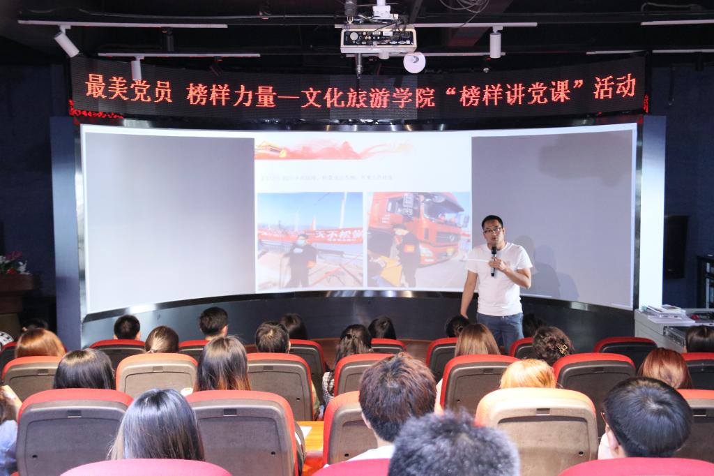 为深入贯彻落实学校《开展党史学习教育实施方案》精神,充分引领全体党员在学史明理、学史增信、学史崇德、学史力行上下功夫,将学习教育成果转化为行动力量,文化旅游学院党总支于4月26日在图书馆八楼环幕厅教室开展了“最美党员 榜样力量”—文化旅游学院“榜样讲党课”活动。