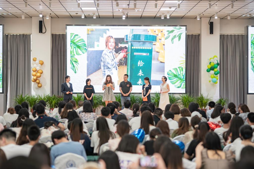 欢送会以“放飞梦想 青春起航”为主题,将温暖和情怀穿插之中。在暖场歌舞之后,精心制作的成长MV《青春起航》带领大家深情回忆了2021届毕业生三年来的校园缩影。从刚入学时的军训、运动会到技能比赛、生活点滴,以及学院老师对毕业生的深情寄语。在《致三年后的自己》环节中,三位毕业生分享了入学时给自己写的信以及三年来的成长感悟,表达了对学校、对老师的感激和惜别之情。