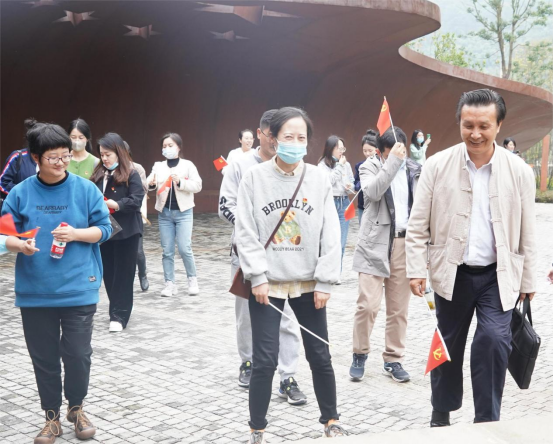 本次前往的高荷镇既有1935 年中国工农红军四方面军建立的第四区苏维埃旧址,又有邛崃酒乡文化、川西林盘等自然景观,可以说是熔革命文物、历史文物于一炉,集自然景观、人文景观于一体。老师们徜徉在秀丽的自然景观中,领略红色高荷的迷人秋景。