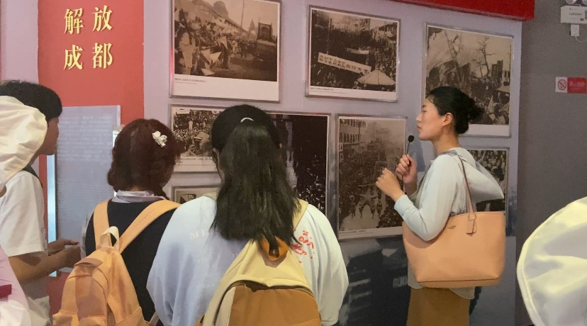成都战役纪念馆是四川省国防教育基地,也是具有地方代表性的红色研学目的地。大家集中参观了纪念馆和烈士陵园,同学们进行了现场讲解训练,结合一张张老照片、纪念章、枪炮、电台等展品,共同追忆成都战役的红色历史。