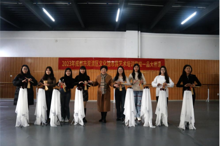 据悉,双流区文化馆一品大师课进校园是双流区落实“以文润城”“以文化人”“文旅战略人才培养计划”等工作的重要文化活动,在为期半个月的学习中,同学们跟随四川清音表演艺术家、第三届中国曲艺最高奖“牡丹奖”表演奖获得者、国家一级演员、四川清音省级传承人田临平老师以及国家一级演员、原四川省曲艺家协会副主席、成都市曲艺家协会副主席、成都市曲艺团团长、文华奖获得者袁永恒老师等学习四川曲艺理论及表演技巧,包括清音、车灯、金钱板等。