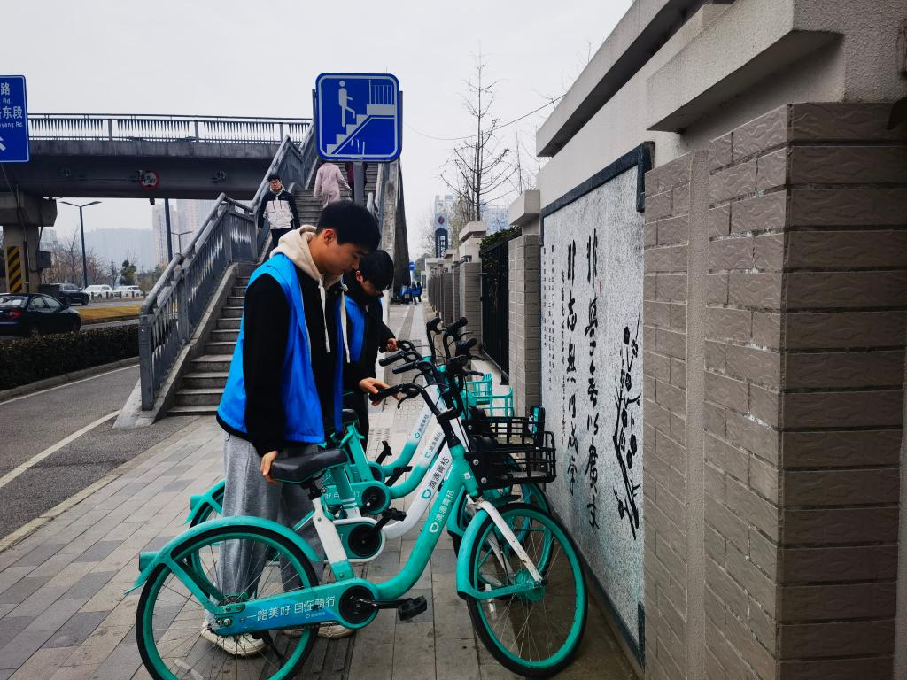 志愿者们在怡心街道河池社区的街道院落中清捡垃圾、整理规范共享单车,用劳动为居民营造美好生活环境,用爱心诠释雷锋精神。