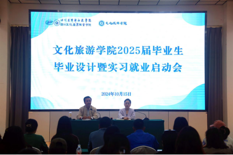 10月15日,文化旅游学院在图书馆4楼会议室召开2025届毕业生毕业设计暨实习就业启动会。文旅学院全体教师、2025届毕业生参加会议。党总支书记田娅主持启动会。