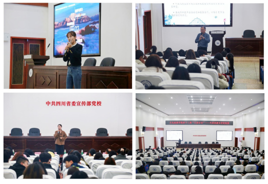 梁中正在致辞时对来校演讲的优秀导游表示感谢,对省文旅厅和旅行社协会送教上门表示感谢。他向在场师生隆重介绍了参加活动的几位优秀导游,他们都获得过国家级、省级大赛的冠军,都入选“天府旅游名导”。他们还分别荣获四川省“五一劳动奖章”、四川省人民政府“金熊猫奖”、“全国青年岗位能手”、“全国巾帼建功标兵”、“四川省技术能手”等荣誉称号。他希望文旅学院师生从他们的演讲中了解行业的发展,学习他们在工作中追求卓越的精神。