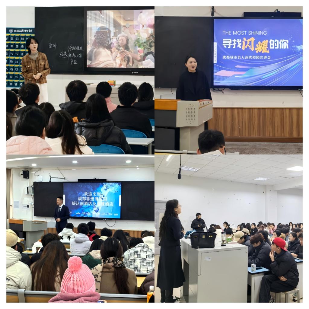 成都世纪城天堂洲际酒店群、无忧传媒、成都星纬月体育文化传播有限公司等30余家企业进校宣讲,其中校企合作单位25家,新增校企合作单位5家,提供了600多个与专业匹配度高的岗位。企业代表与学生面对面交流答疑,并结合企业的运营发展,帮助毕业生了解当前市场的趋势及岗位需求。