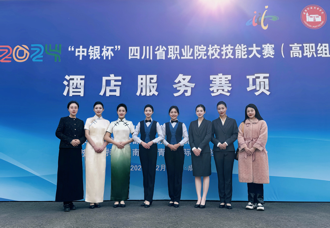 2024年12月15日至16日,2024“中银杯”四川省职业院校技能大赛高职组酒店服务赛项在成都职业技术学院举行。我院酒店管理与数字化运营专业学生郑一名、侯丽佳、傅舟果凭借扎实的专业功底和优秀的临场表现荣获大赛一等奖,黄诗琪、刘佳、伍彩蕊荣获大赛二等奖。