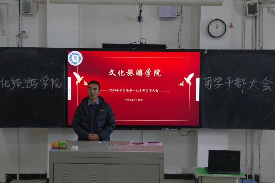 为了明确新学期文旅学院分团委工作规划和部署,更好地开展各项学生工作,充分发挥团学干部的带头作用,2025年2月28日中午,文旅学院党总支副书记尹亮、学工科全体老师以及团学干部、入党积极分子、各班班长团支书、团学骨干齐聚一堂,在二教106举行了2025年春季学期团学干部大会。