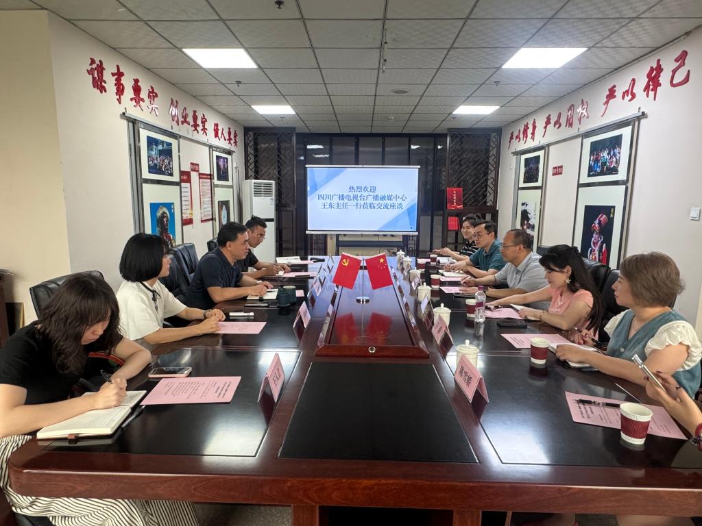 2025年5月14日上午,四川广播电视台广播融媒中心常务副主任王东率银龄大学团队一行到文化旅游学院进行交流座谈。学院党总支书记宋晓、副书记尹亮及相关人员参加交流。