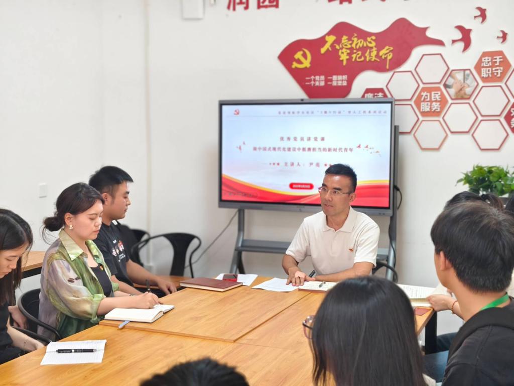 支部书记裴昌达首先领学“第一议题”,引导与会师生深刻领悟习近平总书记关于加强党的作风建设的思想方法与工作方法,筑牢思想根基。随后,文化旅游学院党总支副书记尹亮以“做中国式现代化建设中挺膺担当的新时代青年”为题讲授党课,激发青年使命担当,引导广大学生干部将学院发展与自我成长有机融合。在读书分享环节,入党积极分子傅家媛、胡瑶深情讲述《谁是最可爱的人》中的家国情怀以及《平凡的世界》在平凡中奋斗的深刻价值。最后,支部为党员集体庆祝“政治生日”。在党旗下,全体党员庄严重温入党誓词,铿锵誓言回响活动室。支部书记向过“生日”的党员郑重发放政治生日贺卡,并激励大家永葆初心。