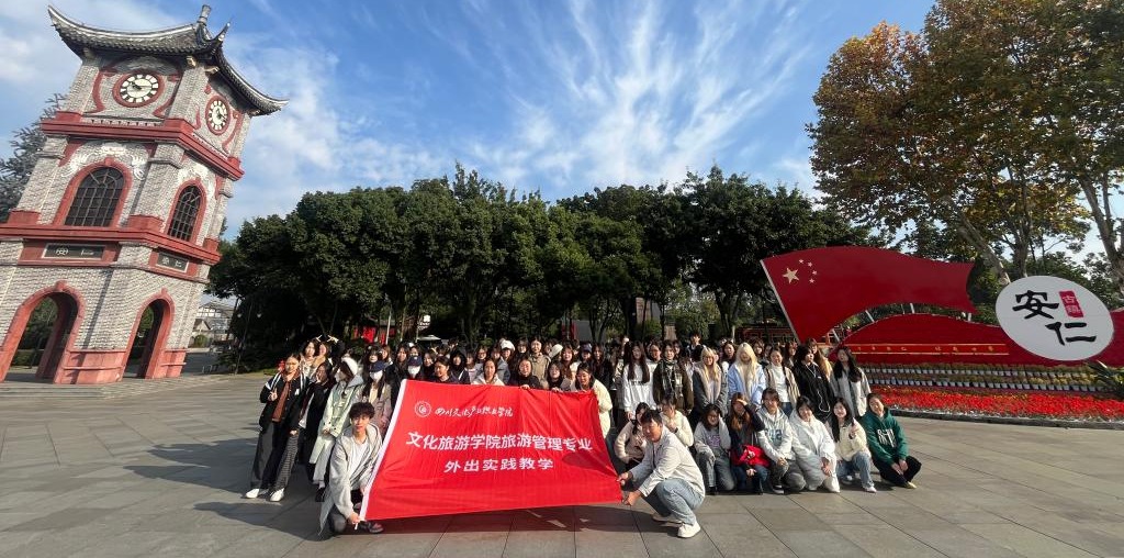 11月20日,大一学生赴安仁古镇与南岸美村开展专业认知实践。在安仁古镇,学生实地考察景区业态布局与游客服务设施,听取教师现场讲解古镇旅游发展模式;在南岸美村,师生围绕乡村资源旅游化开发、客群定位与体验项目设计等议题展开交流。此次实践帮助学生初步建立对旅游行业的直观认识,增强了专业学习兴趣。