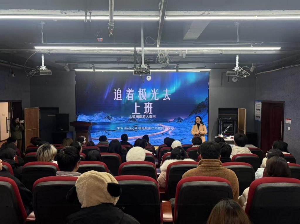 12月30日晚,文化旅游学院第17期“文旅杏坛”在模拟导游实训室顺利举行。本期讲座以“追着激光去上班”为主题,特邀四川省导游协会党支部书记、副会长、高级导游顾琳,四川省旅游协会团支部书记、高级导游刘倩,以及上海极航家旅行社有限公司与NORDIC TRAVEL ASSOCIATES管理团队一行6人担任主讲。学院文化旅游专业群约60名学生到场聆听,现场气氛热烈。
