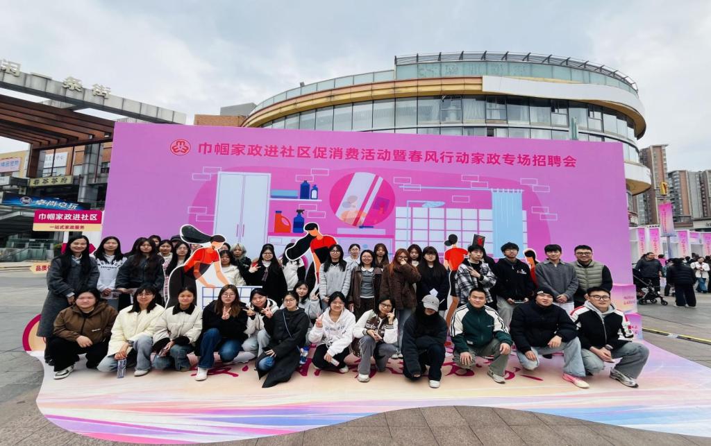 3月19日,由四川省妇联、省发改委、省人社厅、省商务厅联合主办的“春风行动”家政专场招聘会暨巾帼家政进社区示范活动在成都高新区举行。文化旅游学院数智家政产业学院组织2024级家政专业41名学生全程参与,提前一年对接就业市场,助力学生明确职业方向、优化学习规划。