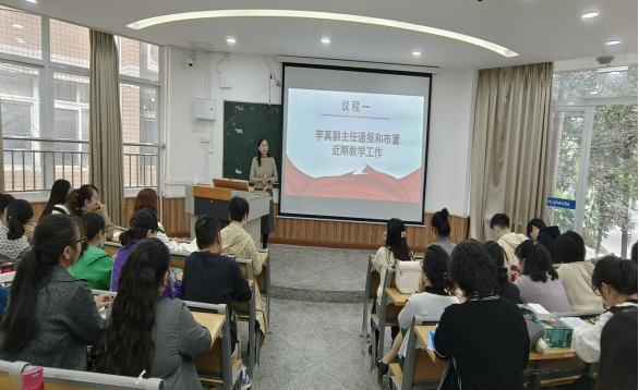 首先由副主任李真通报自本学期开学以来的教学运行情况。李真从疫情期间组织线上教学、教材使用、教学规范、教学评价等方面梳理出问题与任务清单,对近期教学常规管理提出要求。