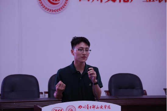 2021年四川省高职院校大学生英语挑战赛省赛一等奖获得者达鑫月和曾丽桦受邀作经验交流。他们分享了自己的参赛心得和英语学习经验,并为参赛者送上诚挚的祝福。