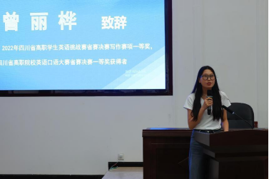 2021年、2022年四川省高职院校大学生英语挑战赛省赛一等奖获得者达鑫月和曾丽桦受邀作经验交流。他们分享了自己的参赛心得和英语学习经验,并为参赛者送上诚挚的祝福。