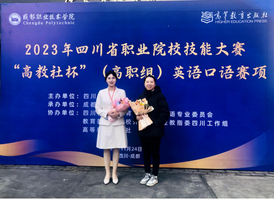 11月24日至26日,由四川省教育厅主办的2023年“中银杯”四川省职业院校技能大赛“高职英语口语”赛项在成都职业技术学院举行,来自全省约60所高职院校的学生参加了比赛。我校参赛师生团队“沈文斌(21级宝玉石鉴定专业学生)、毛英(通识教育部公共英语教师)”以扎实的语言功底、沉稳的现场表现和顽强的拼搏精神荣获一等奖。