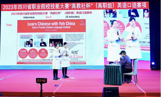 本次大赛围绕弘扬中华优秀传统文化和解析模拟职场环境为主题,包括“中国故事、情景交流、职场描述”三个环节。参赛选手分别完成中国文化主题演讲、与外教现场情景对话交流和对某行业发展的图表进行观点阐述三大任务。值得一提的是,大赛今年首次采用师生同赛的方式举行,师生同为参赛选手,较往年提高备赛难度和强度,综合考察选手文化综合素养、语言交际能力和职场素养,突出职业教育特点和涉外交际能力,检验学校贯彻落实新课标是否落地生效。