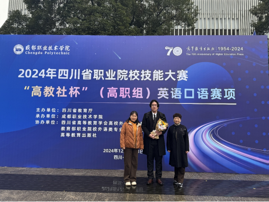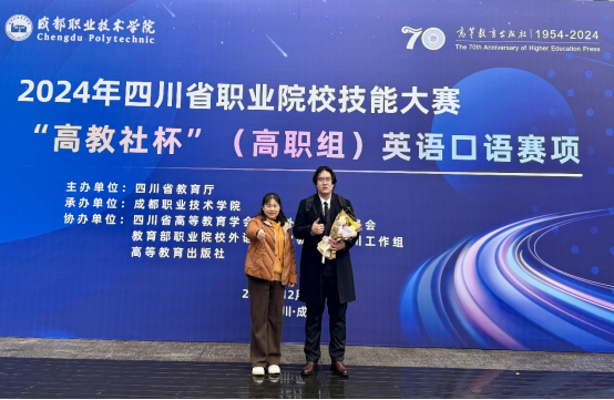 12月7日至8日,由四川省教育厅主办的2024年四川省职业院校技能大赛“高教社杯”英语口语赛项在成都职业技术学院举行,来自全省各大高职院校的64名选手展开了激烈的角逐。我校23级新闻采编与制作专业学生冉昊伦以扎实的语言功底、充满感染力的演讲和沉着冷静的现场表现征服评委和现场观众,勇夺一等奖,尹丹婷获评“优秀指导教师”。