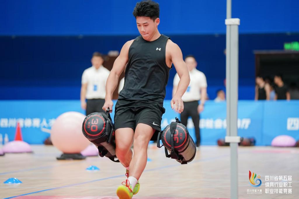 四川技能大赛—四川省第五届体育行业职工职业技能竞赛本赛事属于省级一类行业职业技能竞赛。由四川省体育局、四川省人力资源和社会保障厅、四川省总工会共同主办。四川省体育人才和产业发展中心、四川省职业技能鉴定指导中心、四川省教科文卫工会共同承办。来自全省12个市(州)和34个单位的近300名职业健身教练、高校专业学生和健身爱好者参与,分为公开组和高校组两个组别。竞赛内容涵盖理论和体能两大部分,不仅考验选手的身体素质和实操能力,也强调专业理论知识的积累与应用。